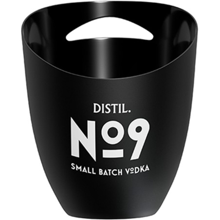 Flaschenkühler / Eiswürfelbehälter aus schwarzem Kunststoff mit Distil No.9 Branding.