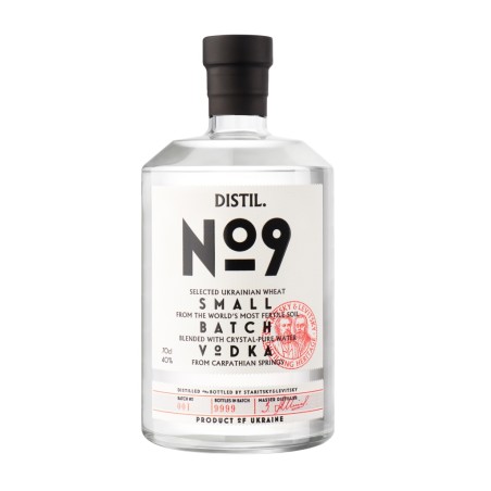 Distil. No 9 ist ein Premium Wodka aus der Staritsky Levitsky Destillerie. Dieser Wodka ist eine moderne Interpretation eines traditionellen ukrainischen Rezeptes und ein junger, frischer Wodka für jede Gelegenheit. Er ist das Resultat der Forschung des S&L Chefbrenners in der Brennhistorie der Ukraine. Nach mehreren Versuchen, erzeugte Destillation No 9 ein außergewöhnliches Resultat. S&L's neuer Wodka war geboren. Distil. No 9 wird 5-fach destilliert und vierfach gefiltert (2x durch junge Birkenholzkohle und 2x durch Strass). Er wird in einzelnen Chargen zu je 9.999 Flaschen produziert.